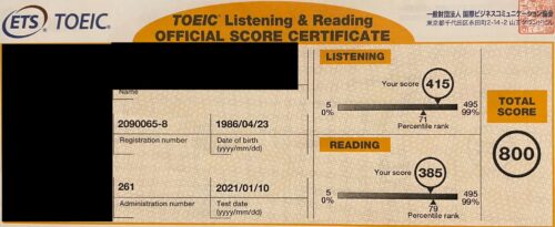 11/15のTOEIC本番の翌週から英検の復習を再度行いました。勉強方法は先に書いた通り精読をメインに「わからないをわかるように」を意識して勉強し、これを2ヶ月続けた結果、約2ヶ月後の1/10に800点も取ることができました。