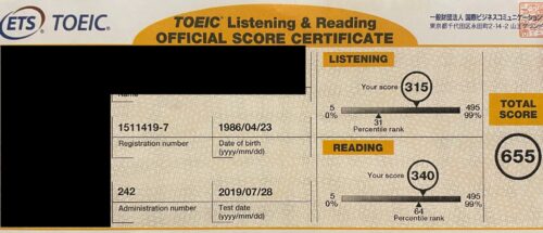 当時のTOEICベストスコアは655点でした。英検準1級に関しては、あと一歩というところで合格ラインに数問足りない、リーディングは時間内に解き終えられないレベルでした。