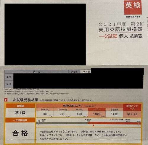 結果として、リーディングの精度と速度がかなり伸びました。英検は精読力が問われる試験なのでTOEICより時間の余裕があるのですが、これまでの3回はリーディングパートを時間内に解き切る(読み切る)ことができませんでした。しかし、しっかりと基礎固めをして挑んだ4回目は余裕をもって読み切ることが出来ました(正答率も向上)。