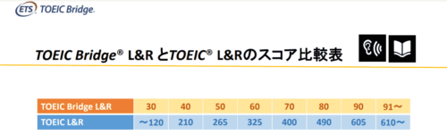 ※TOEIC Bridge-TOEIC L&R スコア比較表